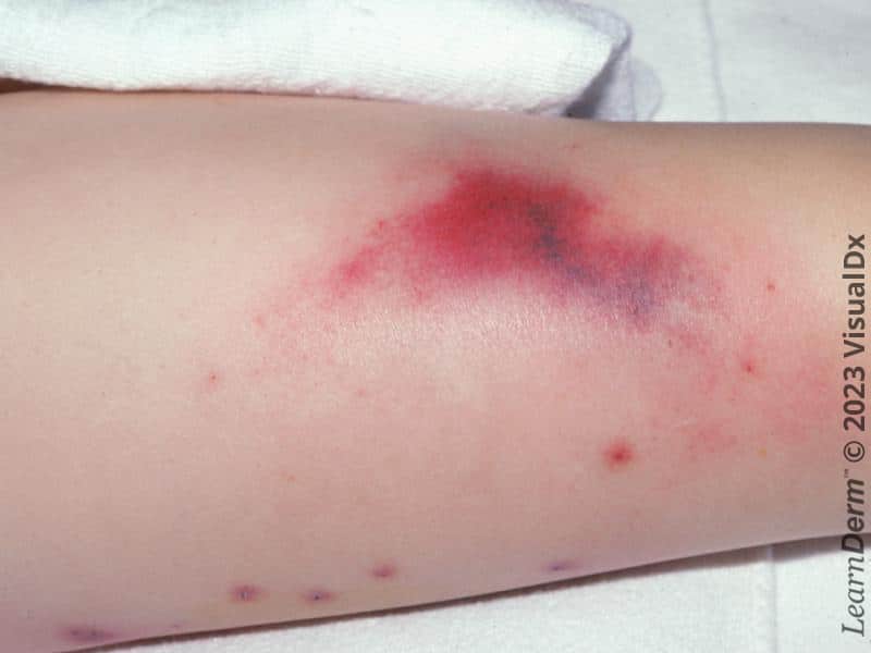 - Petechiae, ecchymosis, and palpable purpura do not blanch because blood has leaked outside the vessels into the surrounding skin.