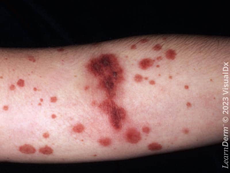 - Petechiae, ecchymosis, and palpable purpura do not blanch because blood has leaked outside the vessels into the surrounding skin.
